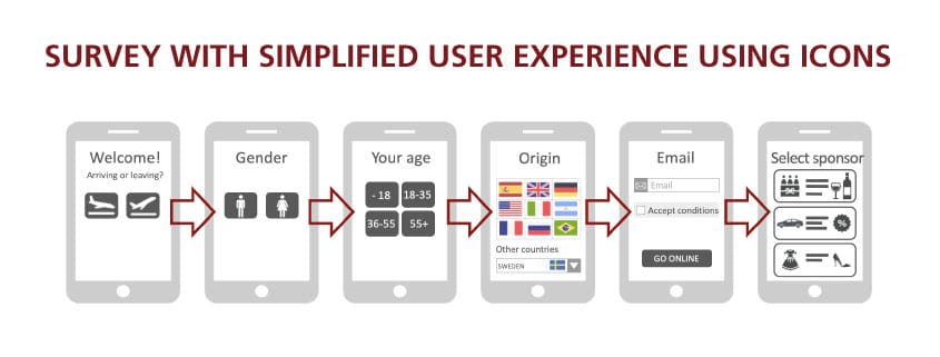 Our modern, icon-based survey functionality for onboarding Wi-Fi users at the captive portal is ideal for passengers moving with a Smartphone in one hand and carry-on luggage in the other.
